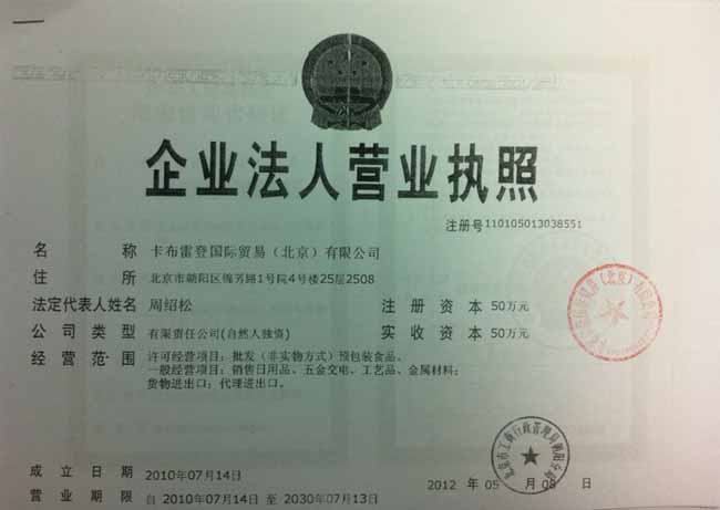 公司名稱: 卡布雷登國際貿易(北京)有限公司